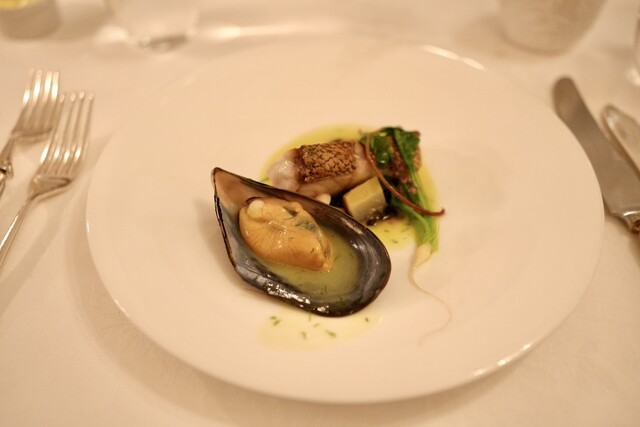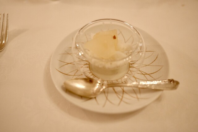 Amuse bouche アミューズブッシュは、「リオレ」というリゾット✖️オレ(牛乳)のミルクリゾットに雲丹が浮かびます。美味しい。スターターとして涼やかです。 Carpaccio de poulpe et concombre "Kaga" à l'aneth フェンネルの香る水蛸と... 詳細を見る
