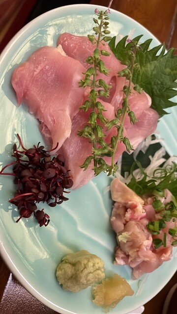 鳥系のつまみや刺身、焼き鳥が数本来て最後は水炊きの鍋料理。