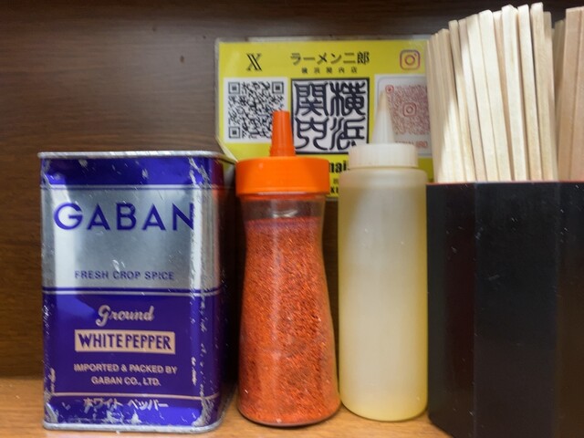 無料トッピングは、ニンニク、ヤサイ、アブラ、カラメ。 |