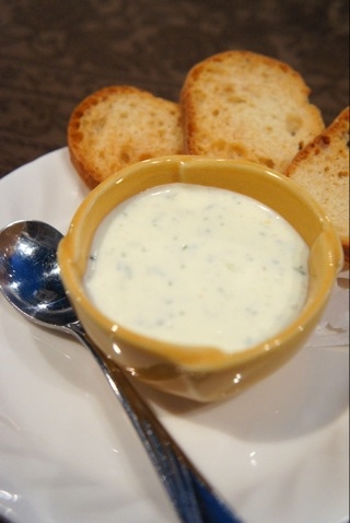 スプーンに乗せられたセルベルド・カニュをパンと共に