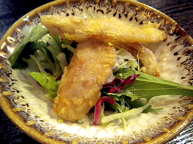 注文は「小尾羊特製香菜入り冷麺」ですよ。先ず出てまいりましたのが小鉢の鮫の軟骨の唐揚げです。お品書きには小鉢が付くなんて書かれていませんでしたんでこれは嬉しいですねぇ。この鮫の軟骨がまたコリコリとして美味しいですよ。