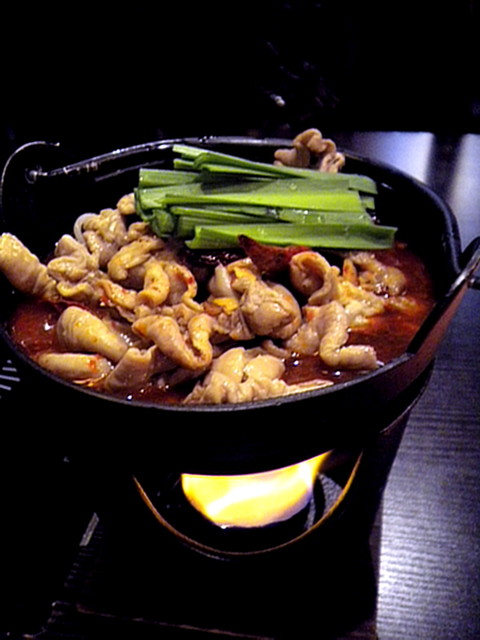 ランチの鍋はちゃんと一人用のサイズの鉄鍋で出てまいりまして固形燃料であっためてというものです。出てまいりましたもつ鍋は色が相当赤いですねぇ。モツはたっぷり入っていますしモツの上には唐辛子が3本とニラが乗っかっています。またスープの中には春雨とキャベツが入っていましたよ。まああったまるまで時間がかかりますから気長に待ちましょう、一応既に火は通っていますからそのままでもいいんでしょうけどね。