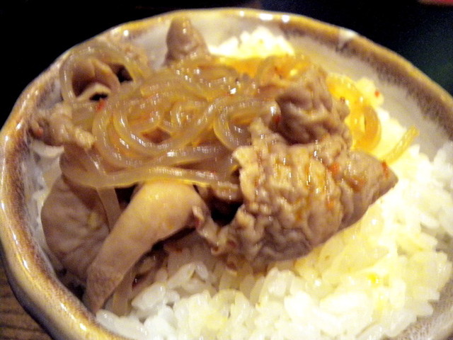 何しろ今回はカメラを持ってこなかったんで、普通ならメニューの写真を取って後から確認するんですが今回はうろ覚えのままでのレビューです。しばらくいたしまして出てまいりました冷麺ですが、毎度のごとく肉たっぷりのネーミングそのままに冷麺の上に肉が山盛りに乗っかっています。アタクシは最近自炊をしていますんで、このくらいの豚肉なら十分お店のほうで利益は確保できているというのはわかるんですが、それでも他店と比べてのCPのよろしさは格段ですよ。