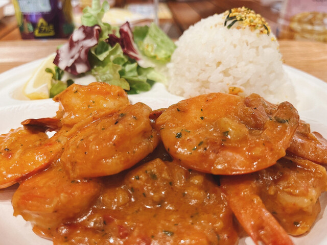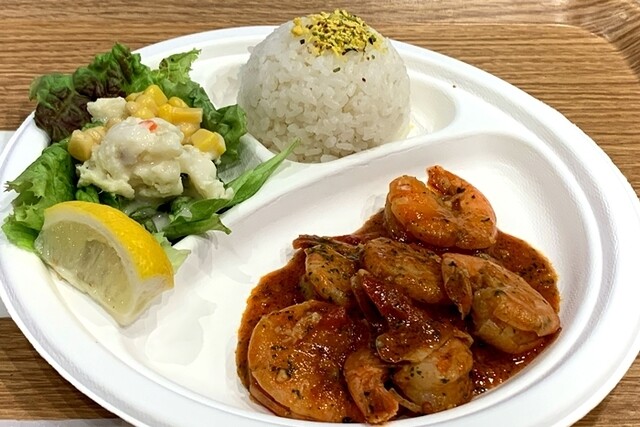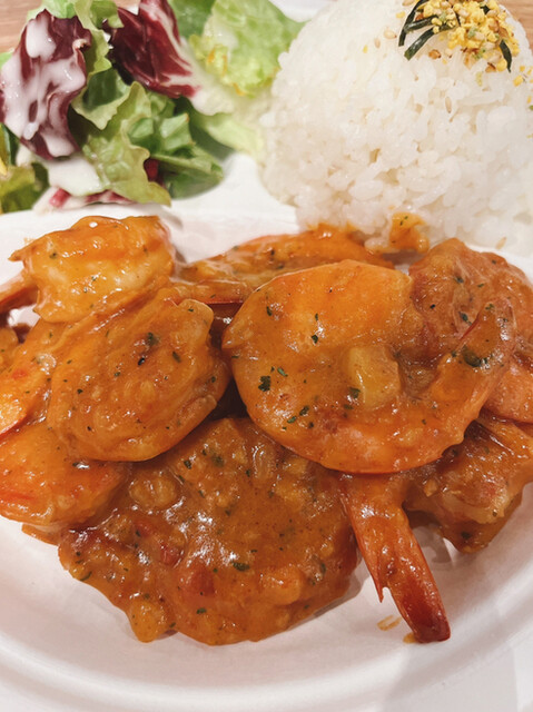 ワールドポーターズ1階の一番奥でやっていたお洒落なフードコート。 その一角のハワイアンコーナーにある割と地味な店。 注文したのは、ガーリックシュリンププレート6P 1,25... 詳細を見る