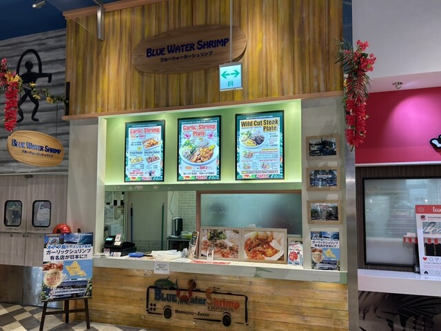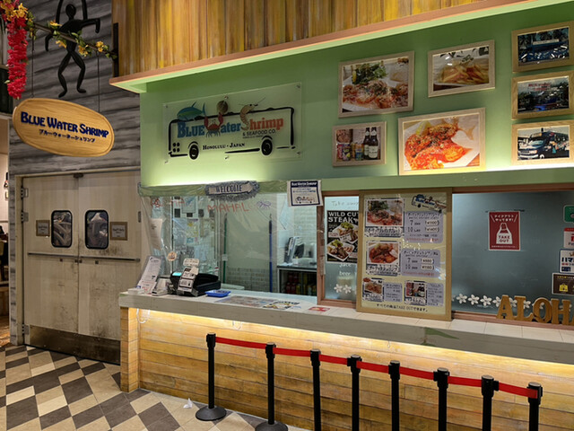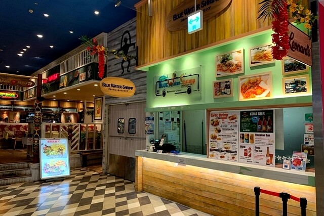 横浜ワールドポーターズの一階のハワイアンレストラン街にあるブルーウォーター・シュリンプ。