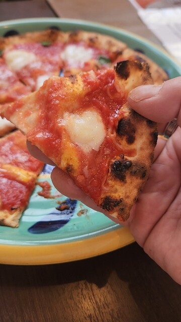 イタリア産ピザ粉を100%使用し、300℃の石窯で焼き上げるピザ。