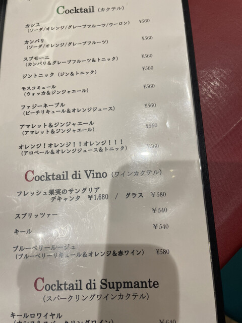 | ドリンク | ワインあり、カクテルあり、ワインにこだわる |