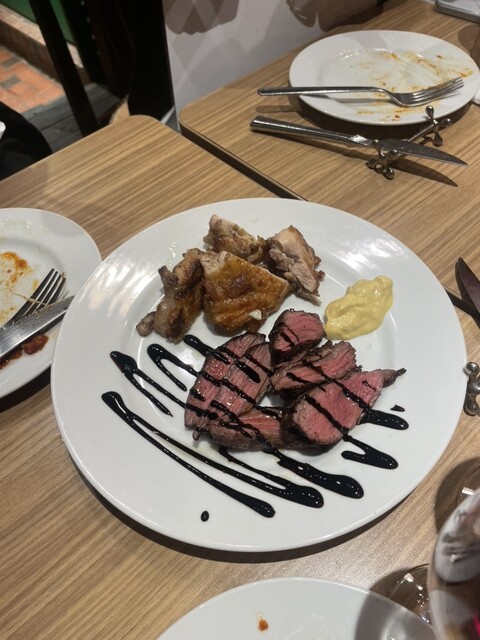 そして、牛赤身肉のローストタリアータ~バルサミコソース~は、しっかり、ジューシィな牛肉とカリッと揚げられた鶏肉が添えられ、カラシマヨネイズ、バジルが良い風味を演出している。