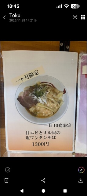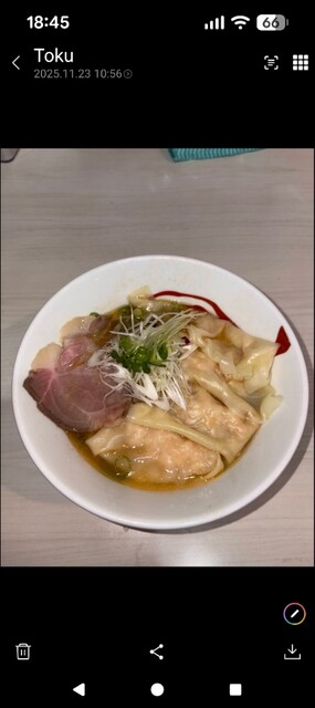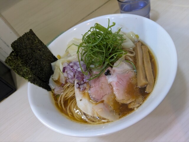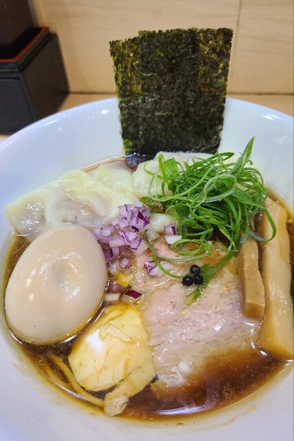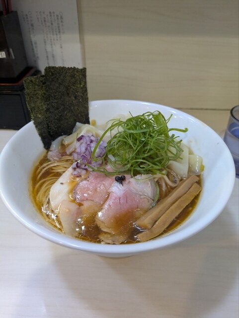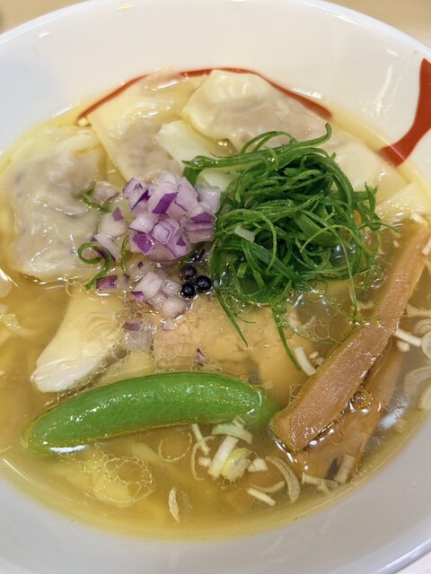 限定の「甘エビとミル貝の塩ワンタンそば」を頼んだつもりが全然エビも貝も感じない。スープ温度が高すぎるせいかとも思ったが精算時に注文は普通のワンタン塩だったことが判明。