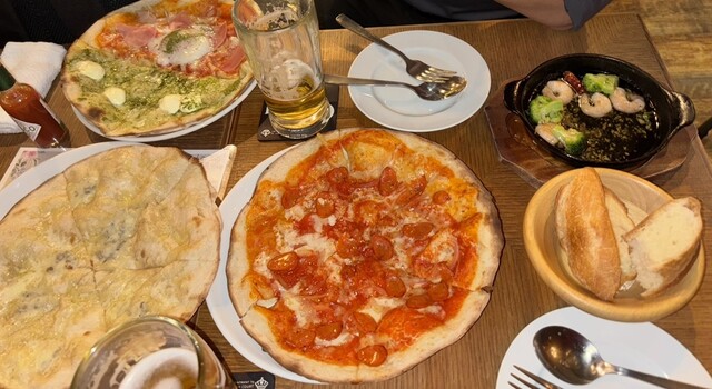 オーダーミスられてしまいましたが、お料理は全部美味しくてコスパが神っていました。クリスピーのような薄いピザは好みがわかれると思いますが、私は具材の味が楽しめてとても良いと思います。、アヒージョもおいし...