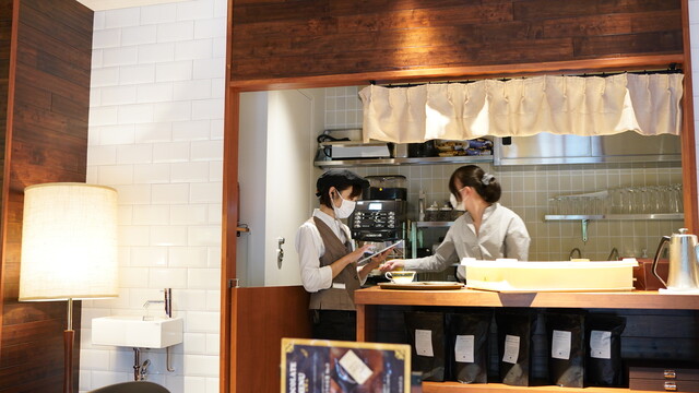 テイクアウトは1F、カフェは2F。カフェの会計は1Fにて後払い。 |