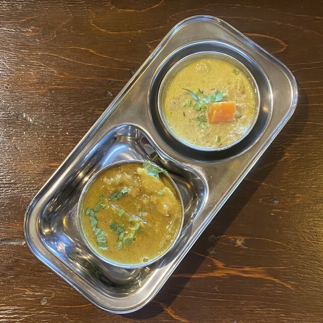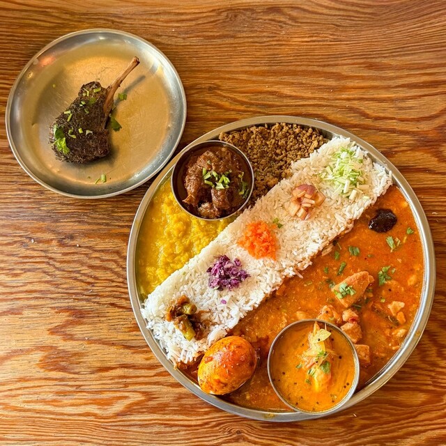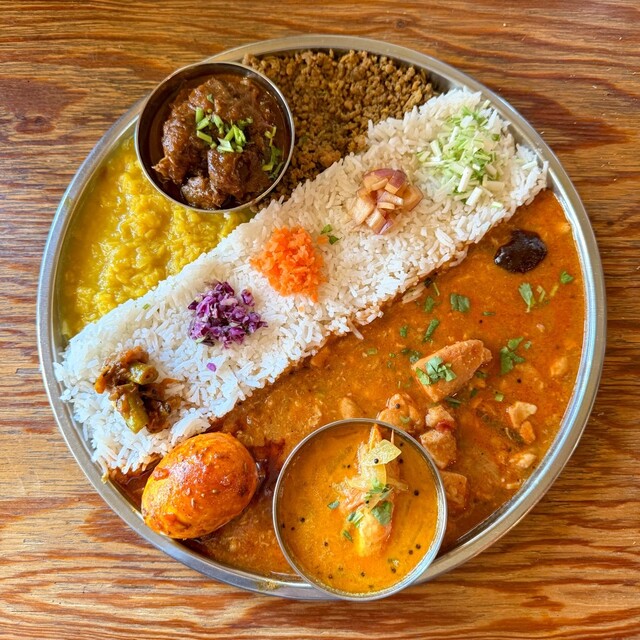 美しさと美味しさが比例する自慢の色鮮やかなカレー。プレートの上に3種類のカレーと副菜を区分けして盛り付けることで、味を混ぜ、味を探しながら食べ進めていただけます。店内は田舎にある古民家のような、非日常を感じられるお洒落な空間です。また、店主自ら定期的にインドに足を運び、本場の知識を吸収し美味しいカレーを作り上げています。非日常とカレーの無限の可能性を満喫しに、ぜひ当店へお立ち寄りください。