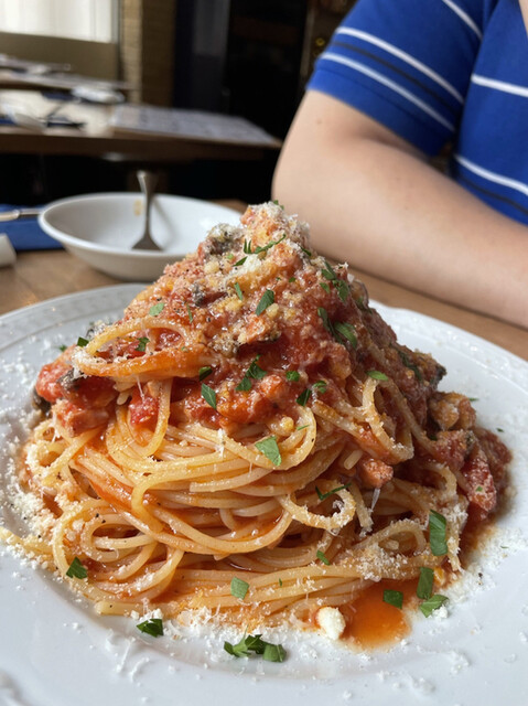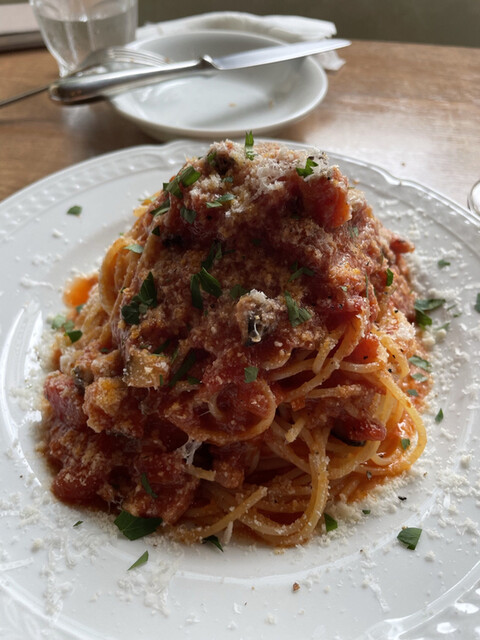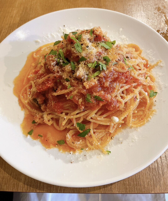 2023年10月再訪。 今回の注文は、休日限定ランチセット1320円。生ハムトッピングサラダ、パスタまたはピンサーナといった内容。食後にアイスコーヒー440円も付けました。対... 詳細を見る