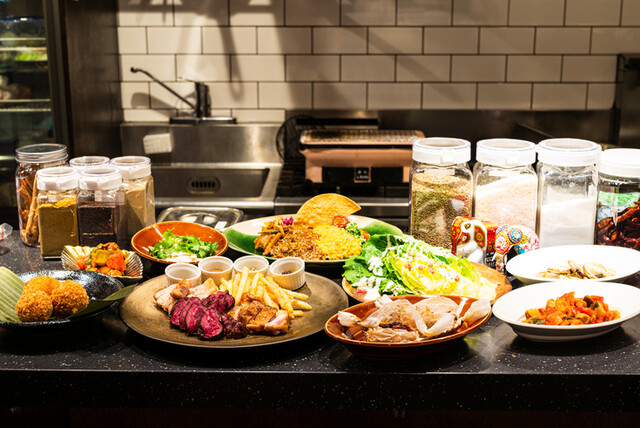 肉バルアンカーグラウンド×スリランカと日本の夢の架け橋を目指した『スパイスカレー食堂LABO』監修 Spice Loves Meatを合言葉に【名物炭火焼スパイスミートロック】【南の島のマゼるカレー】【進化系アジア飯】などオリエンタルな香りのスパイスを使用した、個性豊かなお料理を豊富にご用意しております。