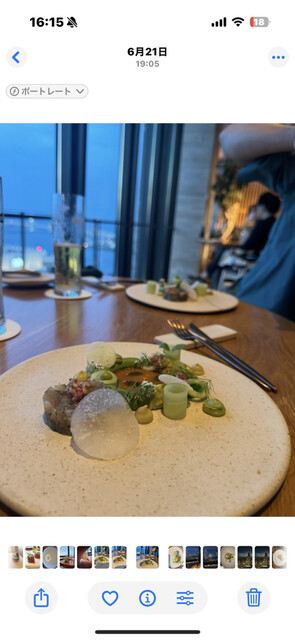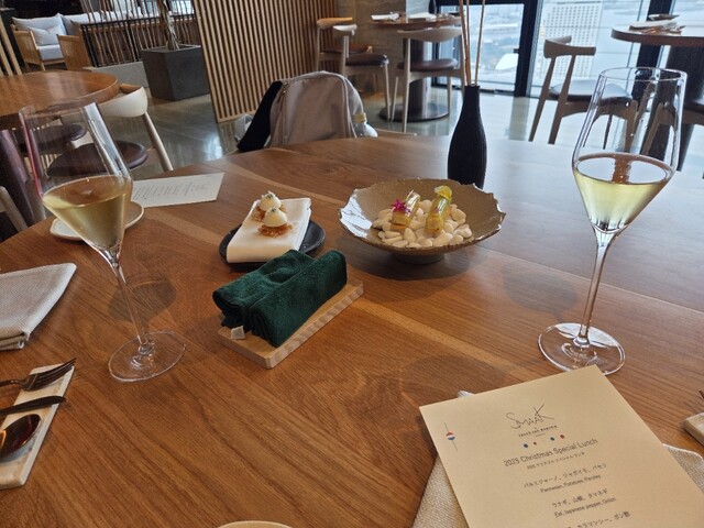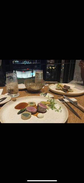 ディナータイムに訪問しました。夜景がとても素敵で、遠くに東京タワーやスカイツリーまで見えました。お料理は食べログでは4品になっていますが、もっと多かったです。海外仕様なのか、日本人シェフが作るものより...