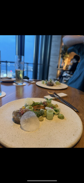 高層階の46階から見える夜景とイノベーティブ料理と聞いて、味自体はそこまで期待してなかったがめちゃくちゃ美味しかった。