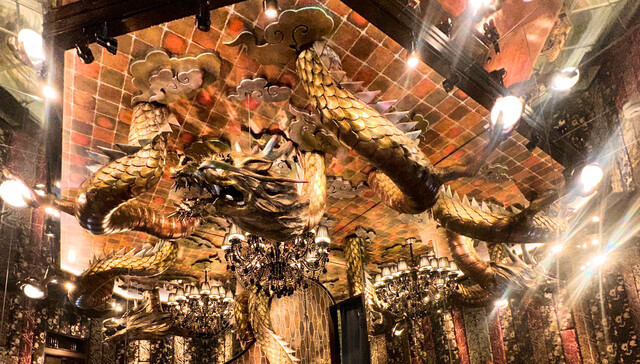 地下に向かう1Fの入口は、ファミマとスタバに挟まれておりますが、両者に負けないくらいに個性的な雰囲氣で、正面から見ると、大きな龍が描かれているのがわかります。