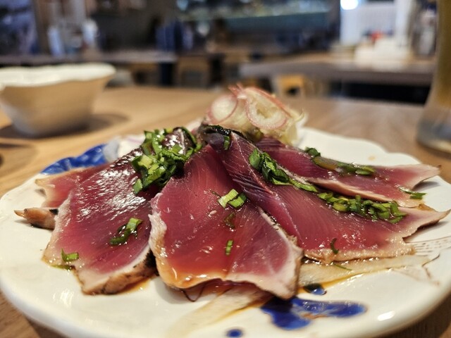 ・お通し なめこと山菜の和え物 なめこでとろん ゆずと酸味でさっぱり ・シマアジ 脂がのっててとろける 美味しいなぁ ・かつおニラ醤油 ニラかおるかつおのさっぱりたたき 夏にはこうゆうのですよー ・マグロ海王盛り合わせ 腹トロ 凄い脂かと思いきや、ぎとぎとじゃなく上品な大トロって感じでした ビンナガマグロ しっとりまったりで食べやすい 本マグロ赤身 さっ... 詳細を見る