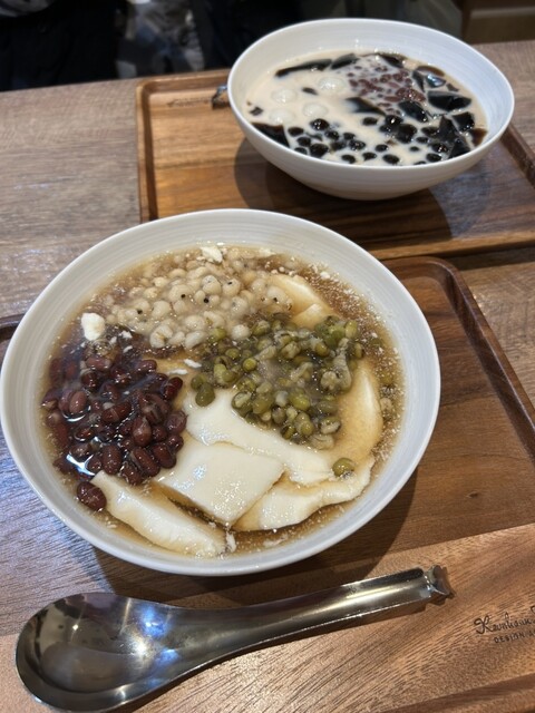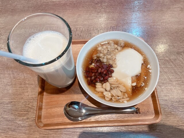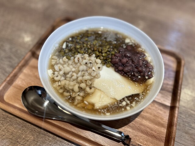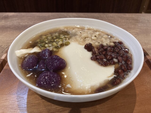 豆花と呼ばれる、豆乳を柔らかくかためたものに、甘いシロップとトッピングをのせて食べる台湾スイーツが楽しめます。