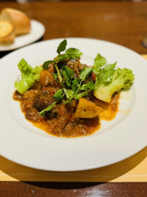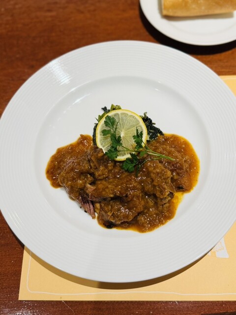 子羊の揚げ煮としてレモン風味でいただきました。お写真では見えにくいかもしれませんが、お肉の下にはほうれん草もたっぷりで嬉しい一品でした✨