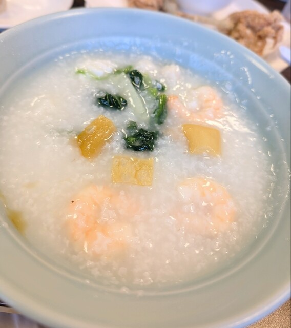 貝柱のお粥とエビシュウマイ、八宝菜(写真撮り忘れ)を注文!