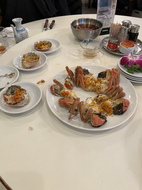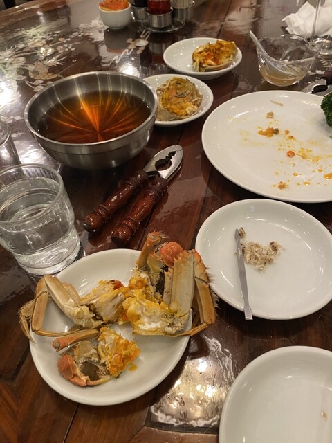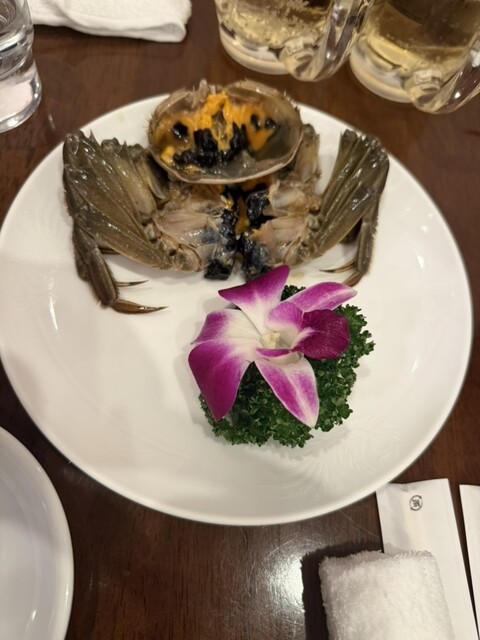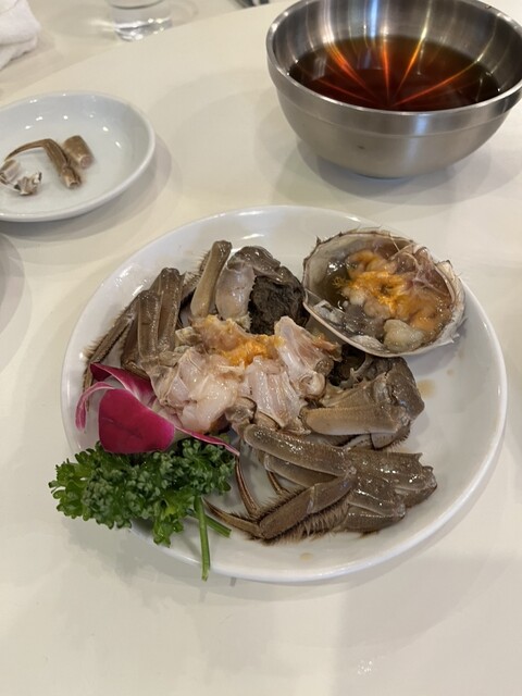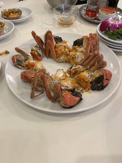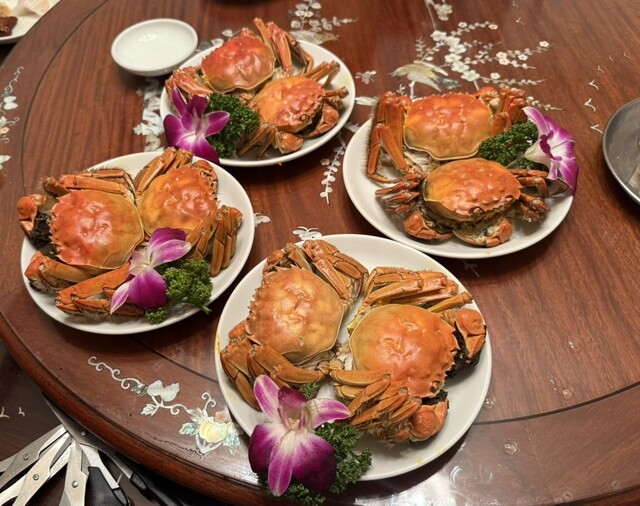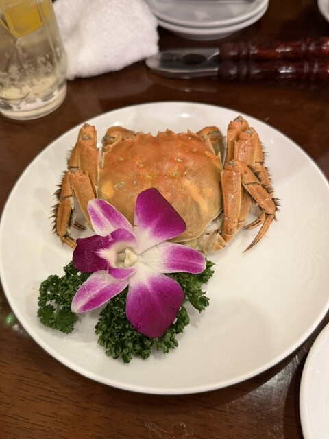 横浜・山下町の老舗で、上海料理をいただきました。この日は季節の上海蟹が目的でもあり、円卓に並ぶ料理のなかで自然と存在感を放っていました。