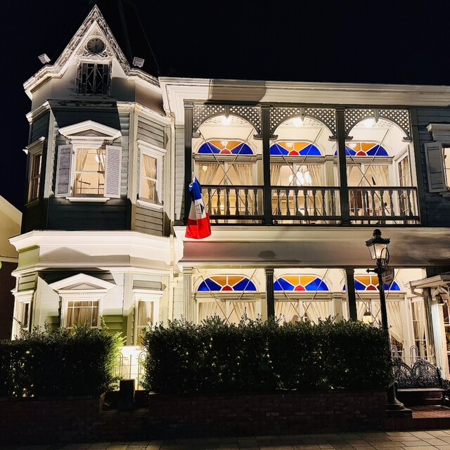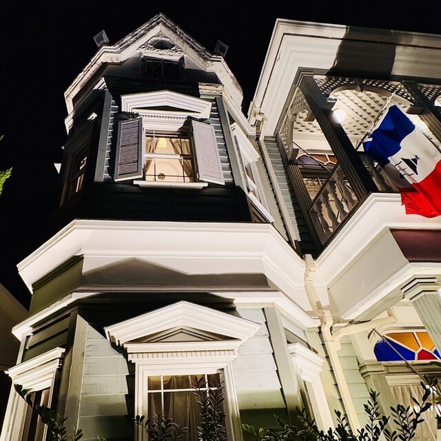 元町から見尻坂に入り、急な坂道をずんずん上る。山手本通りに出たら、すぐ右手にある洒落た洋館が『山手十番館』である。休日の18時にディナーコースを予約をして訪れる。20分ほど早く着いたが、中に入れてもらい一階で待機。時間前だが二階に通され、窓際から離れた席に案内いただく。さっそくスパークリングワインで乾杯!(妻殿はノンアルの泡)。はじまりは「十種類の厳選野菜を使ったガーデン仕立てのサラダ」。薔薇を模った大根のピクルスを中心に彩り野菜、花弁、フリルレタスの裂片が飾られたサラダをアンチョビマヨネーズ等で戴く。次いで運ばれたアミューズは、石をイメージしたとのこと。稚拙さがあり、ままごと遊びを想起させて、暫し童心に帰る。ここで白ワインにして、ニュージーランドのシレーニを頼み、前菜の「富士サーモンのデクネリゾン」を戴く。真っ白な皿に三種類の調理法で拵えたサーモンの小品は、見た目が可愛らしく繊細な味わい。続いて「フォアグラのパートフィロ包み 青胡椒ソース」が供されると、香り高くパリッとした食感は良いのだが、肝心のフォアグラが、ぶよっとしていて、とほほ…。赤ワインにかえて、京都丹波の古式部を頼む。ポアソンは「甘鯛の鱗焼 十五穀米のガレット」。松笠に焼かれたウロコが香ばしく砂利っとした歯触りが面白い。敷かれたガレットとオマールソースが好相性で素晴らしく、これは美味い!メインは「特選和牛のポワレ 季節の野菜添え ジュドブフ」。とても柔らかく程好く脂ののった牛肉は、濃厚なジュドブッフを絡め旨味を余さず戴く。然る後デザートで口直ししてコーヒーをゆっくり喫し、トラデッショナルな料理の余韻を堪能したところで、ごちそうさまでした♪