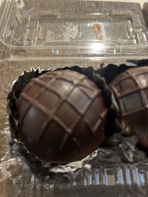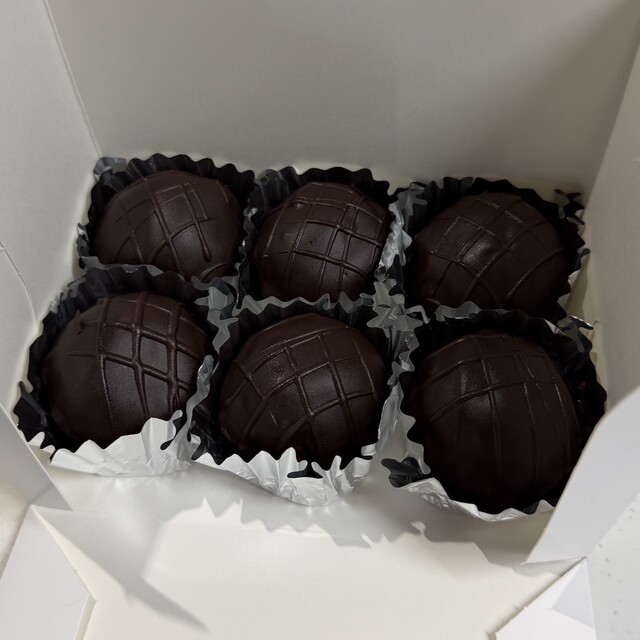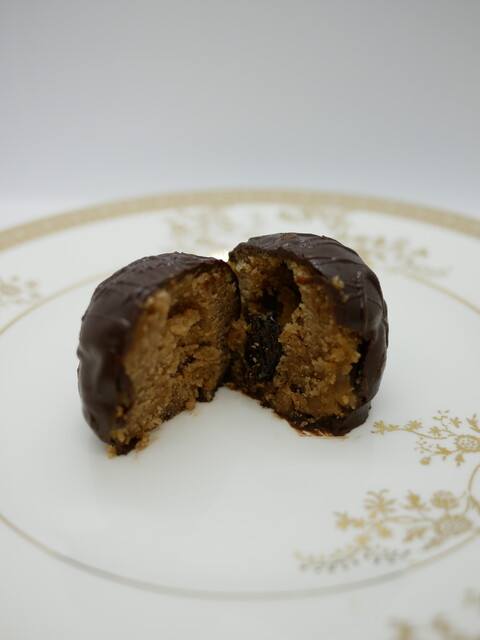前情報も無く、洋酒を包んだチョコレートと思っていたのですが、自宅で頂きイメージが全く違っていたことが分かりました。ゴルフボール大にギュッと堅く丸く締めたパウンドケーキを薄いチョコレートで包んだお菓子と表現すれば良いでしょうか。パウンドケーキには細かく砕かれたレーズ...