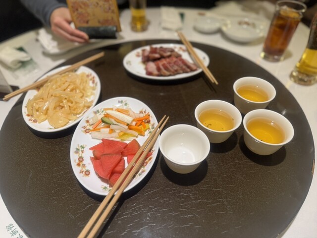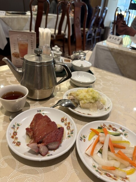 以前行ったここ菜香新館。お昼の飲茶コースにしました。野菜の甘酢漬けとチャーシューが美味しい。