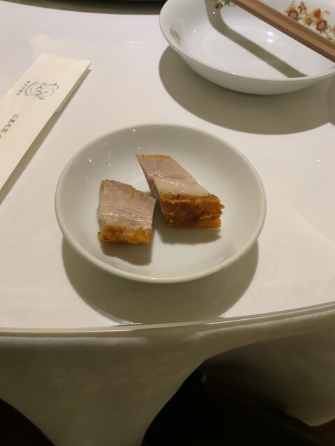 前菜の皮つき豚のチャーシューの食感がサックサクでたまらなく美味しかったです トマトにかかっていた干梅のソ...