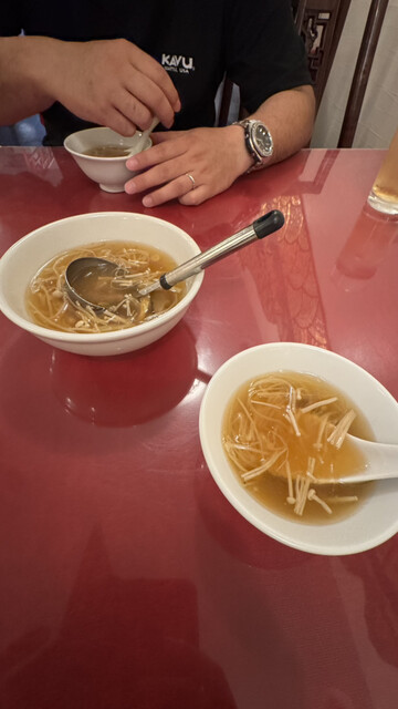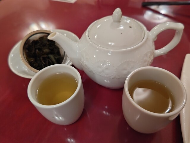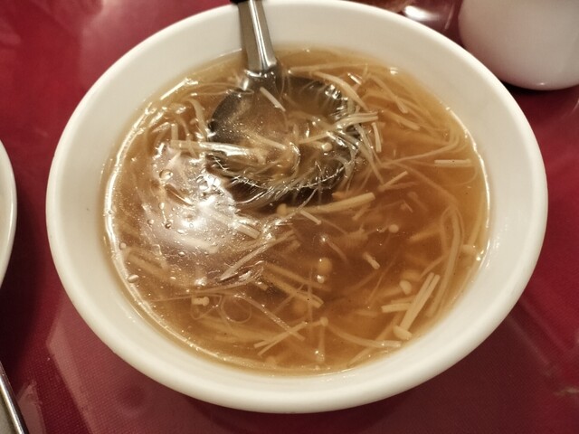 まず、ごお櫃入り御飯とたっぷりスープ、ザーサイが来て、そのあと、メインが来る。小さな杏仁豆腐もこの時同時にサー...