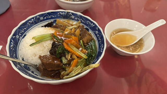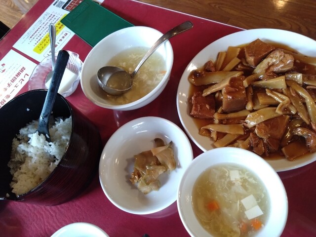 ランチタイム利用。サービスランチで、豚バラ肉とメンマの煮込みを注文。お値段は980円。