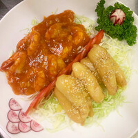 豚肉と季節野菜の炒め アワビオイスター炒め 翡翠炒飯 杏...