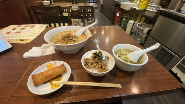 あとは麻婆豆腐や、エビチリ、青椒肉絲の丼に点心、スープ、杏仁豆腐がついたセットも