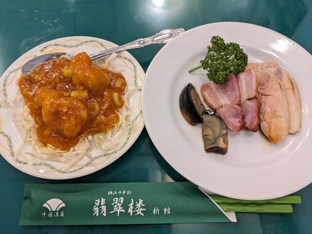 中華街にある翡翠楼(ひすいろう)にきました。 名物は、トップの写真の翡翠チャーハン。 店内の様子。 小さなお店ですが、テーブルの間隔が広く、ゆったりと落ち着いた感じです。 2階は宴会スペースのようで、この日は予約のお客さんが結構来ていました。 名物の翡翠チャーハンをいただくことに。 お得なセットメニューもありますが、この日は、アラカルトで注文しました。 エビと豚肉の旨煮(1500円)。... 詳細を見る