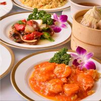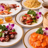 ・4種前菜盛り合わせ ・牛肉の四川風炒め ・車海老のチリソース炒め ・海鮮とアスパラ炒め ・蟹爪 ・北京ダック ・フカヒレスープ ・麻婆豆腐 ・小籠包 ・翡翠餃子 ・蟹炒飯 ・杏仁豆腐