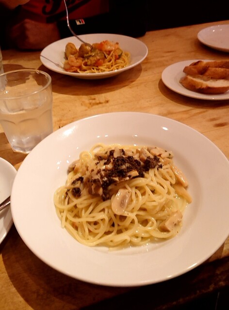 少しだけ太くて平たいリングイネ、大きなアサリとイタリアンパセリ、実にシンプルな王道のボンゴレビアンコで、美味しい...