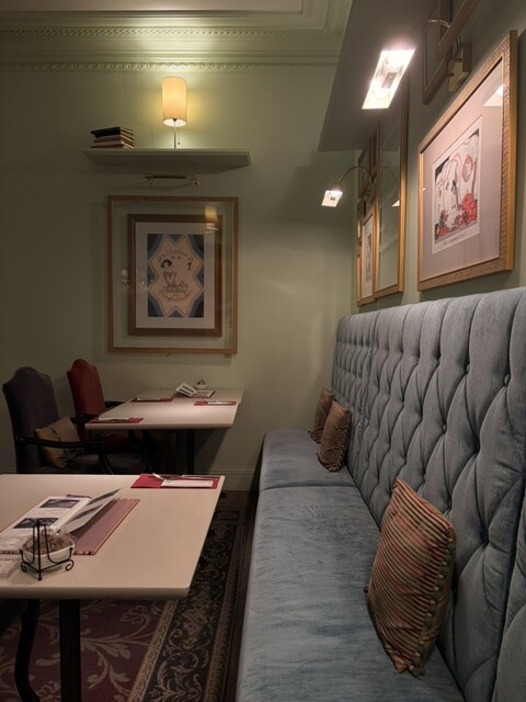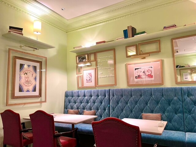 カフェスペースは高級感がありヨーロピアン風のインテリアが並んでいる。