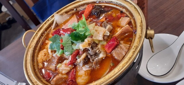 新館では炭火銅鍋を使った『東北酸菜白肉鍋(漬白菜と豚バラ肉のしゃぶしゃぶ鍋)』、『羊湯(羊骨スープ)』等、ヘルシーな羊肉を使った料理を中心とした、珍しい中国東北地方の家庭料理が取り揃えられています。中華街の調理人や中国人にも大人気で、中国人のお客さん率が高い、中国の雰囲気が味わえるお店。TVや雑誌にも多数取材された横浜の名店です。日本人の口にも合う中国東北地方の家庭料理がリーズナブルに味わえます。