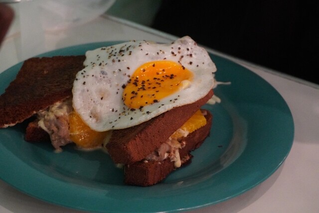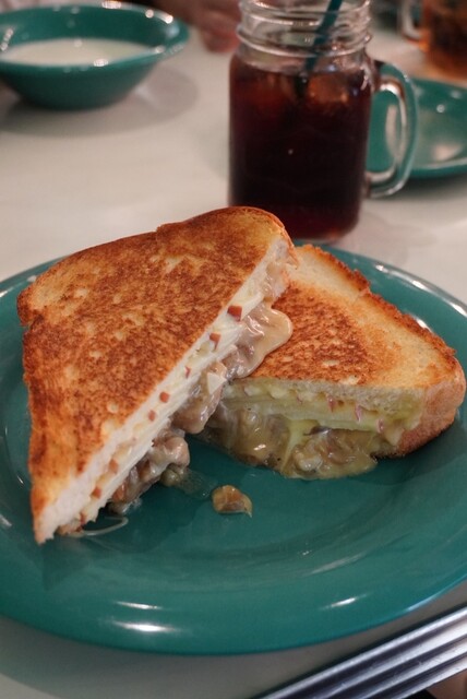 茶色いパンのホットサンドには