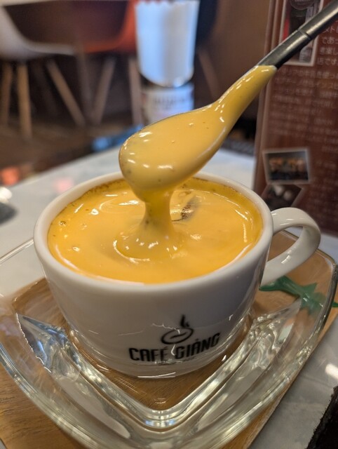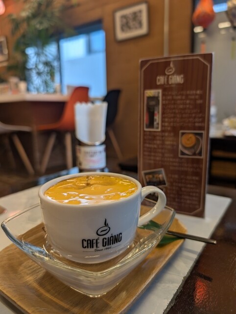 前々から行ってみたいと思っていた中華街にある「CAFE GIANG」でひと休み。驚くことに、ここはベトナム・ハノイに本店を構える『エッグコーヒー』発祥店の世界第2号店だそう。そもそも『エッグコーヒー』とは、イタリアのカプチーノから着想を得て、牛乳の代わりに卵とコンデンスミルクをカスタードクリーム状に泡立てたものを乗せたコーヒーだそうです。