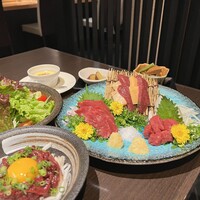 馬刺し4点盛りに人気の桜ユッケ丼が付いてます!