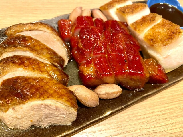 焼き物盛り合わせは、豚チャーシュー2種類とアヒルチャーシュー。