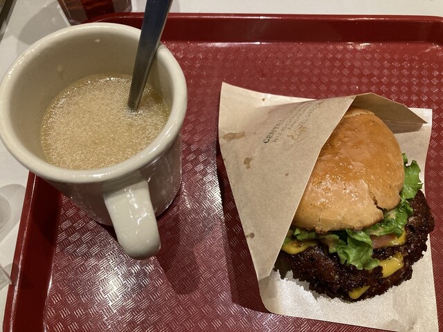 土曜日11:40に到着するとすぐに案内していただけました。チーズバーガーとポテトのセットにコーラを付けました。とても美味しかった。音楽にもこだわっていてあの忙しい中アナロ...
