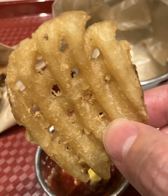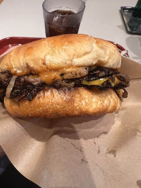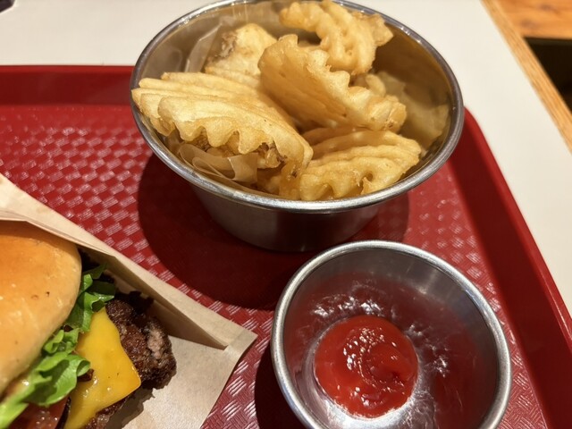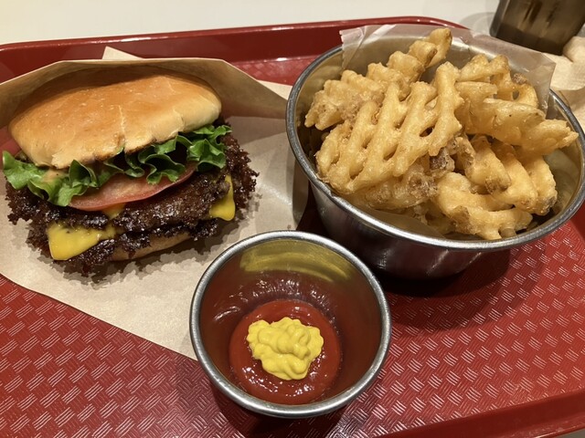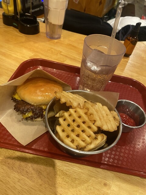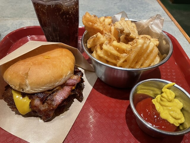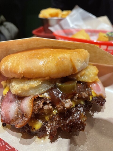 ハンバーガーショップのバーガーもよく食べに行っていますが、ここのはめちゃくちゃ美味しかったです。特にパティがゴロゴロ?肉でジューシーなのと、パンが柔らかかったです。注文したのはBBQ?なんとかで、ベー...