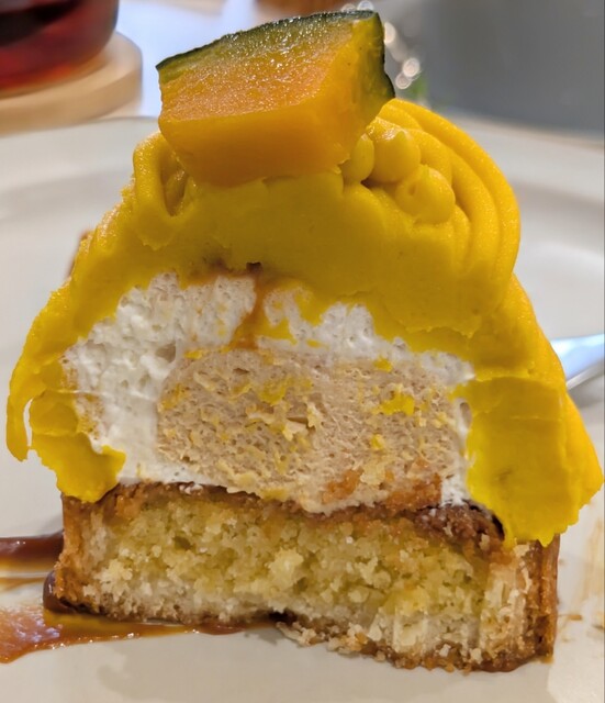 土曜日の14:30頃お二人様カフェ利用。 先客5名ほど。 今月限定の季節のスイーツから以下注文。 ◆かぼちゃもんぶらん¥670 それと10/1〜10/13期間限定の... 詳細を見る