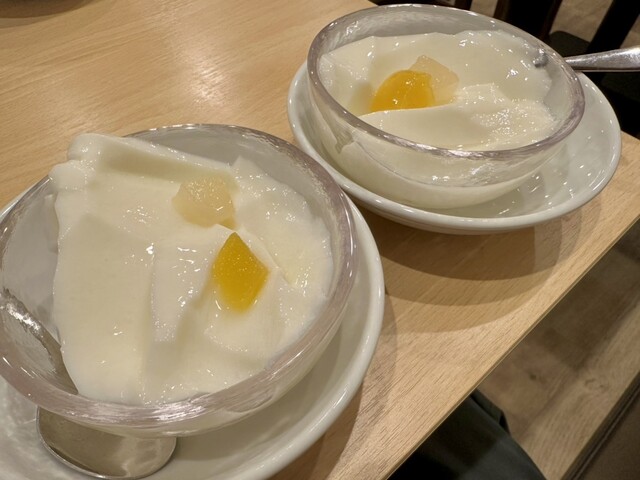 で、店長さんが持って来てくれたのはふたつの杏仁豆腐。