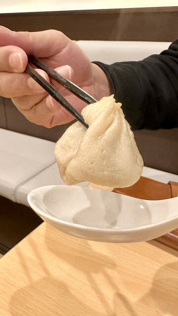 鴨小籠包も中のスープがすごい。鴨の旨みが濃縮されています。このスープの量、そして濃厚な味、少し皮が厚めの意味が分かりました。