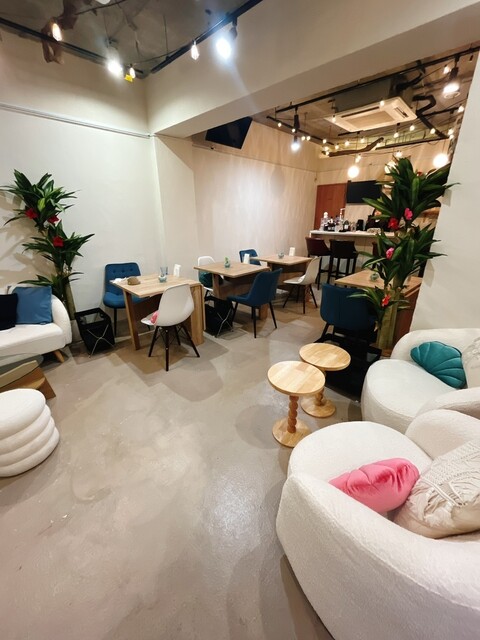 | 空間・設備 | 落ち着いた空間、カウンター席あり、ソファー席あり、カラオケあり、プロジェクターあり、電源あり、無料Wi-Fiあり |
