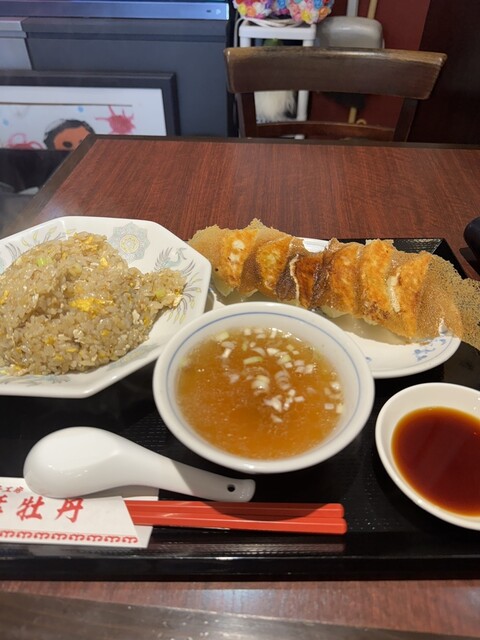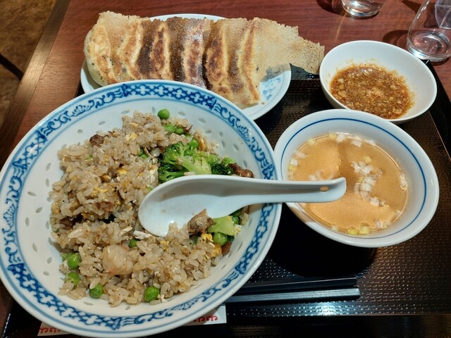 五目チャーハン&餃子にんにくタレを注文。料理は全体的にあっさりしており、これを物足りない味つけと考えるか舌に痺れもなくもたれない優しい味と考えるかによって評価は変わります...